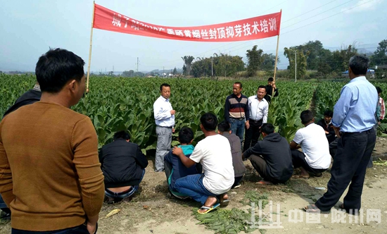 现场会上城子烟站技术员主要围绕封顶打杈技术、优化烟叶结构、合理使用抑芽剂、保持田间卫生、适时排灌、病虫害防治进行培训。封顶抑芽管理到位是晒黄烟丝取得产量、确保质量的基础保证,现已经进入生产关键阶段,经过及时、到位的现场培训,引导广大烟农严格按照技术参数来进行中耕管理,确保我镇烟草产业提质增效。