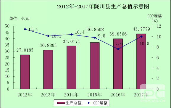 2017年,全县全部工业总产值实现263774万元,同比增长21.3%,实现工业增加值53997万元,增长11.3%。