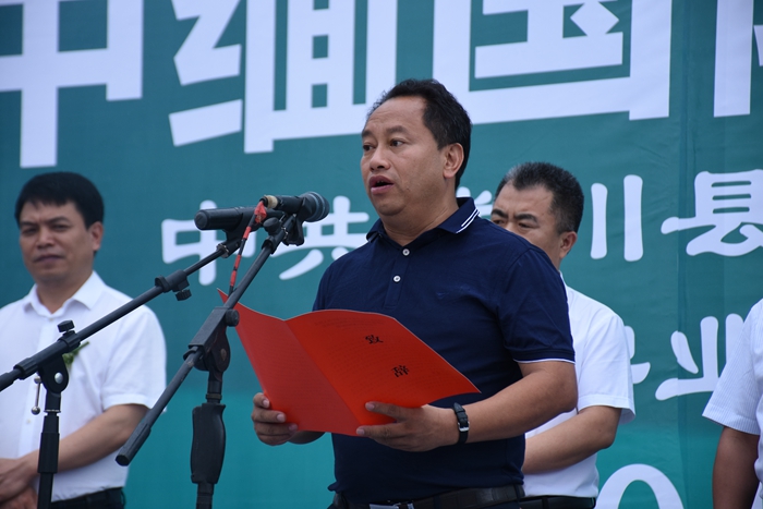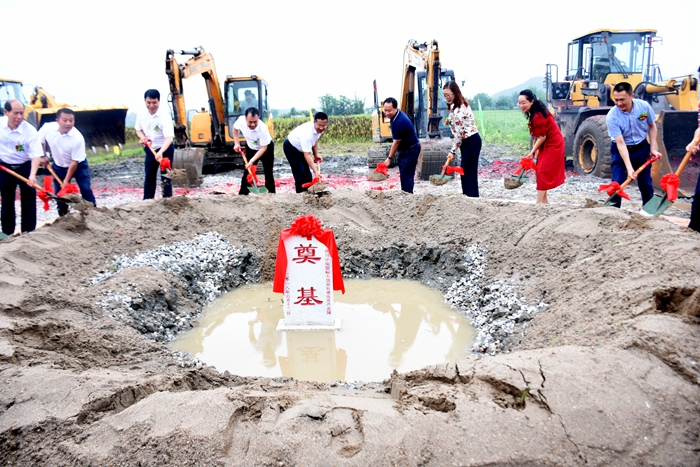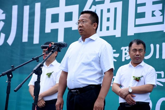 德宏州人民政府副州长李正环先生宣布项目开工,主席台的领导为项目集中开工培土奠基。
