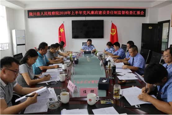 6月13日,德宏州纪委派驻德宏州人民检察院纪检监察组曹明厘组长带领全州各县市院派驻纪检组一行6人到陇川县人民检察院对2018年上半年党风廉政建设责任制开展监督检查。