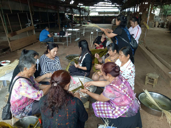 下午,城子社区组织志愿者到垃圾场清理排水沟,组织参加活动的妇女同胞到片区活动室包粽子,大家有说有笑,分工合作,其乐融融。