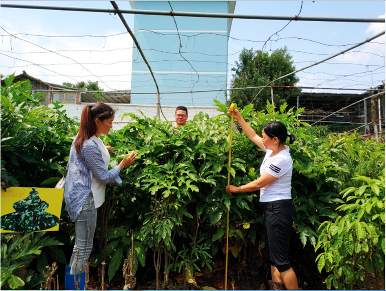 在苗木检验检疫过程中,工作人员首先查看了种苗叶色是否正常、嫁接口愈合是否良好、顶芽是否饱满、生长是否健壮、木质化程度是否充分、有无病虫害,经过认真查看,没有发现种苗有病害或其他异常现象,按检验、检测依据对苗木的苗高、地径进行检测,并测算出苗木的产量及Ⅰ、Ⅱ级苗木所占比例。同时把《云南省林木种子条例》发放到育苗户手中,让育苗户尽可能更多了解和认识《云南省林木种子条例》内容。