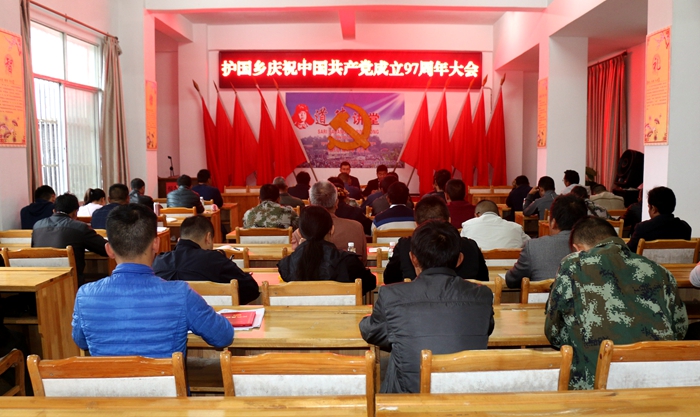 为庆祝中国共产党成立97周年,全面贯彻落实党的十九大精神,增强践行习近平新时代中国特色社会主义思想,、增强党组织的凝聚力和战斗力,激励基层党组织与广大党员继承和发扬党的光荣传统,增强党性意识,凝聚智慧力量,坚持“不忘初心、牢记使命”,进一步增强党组织的凝聚力和战斗力,激发党员的积极性和创造性。7月2日上午,护国乡召开庆祝中国共产党97周年大会,各党(总)支,部分党员代表、预备党员共计70余人参加了会议。