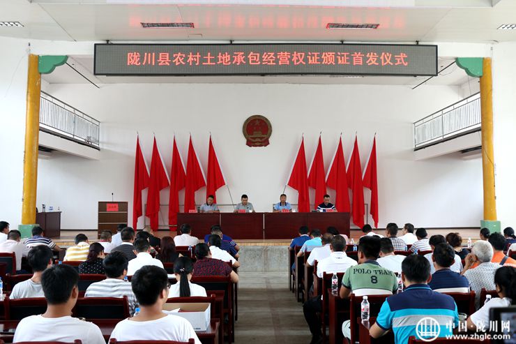 为加速推进全县农村土地承包经营权确权登记颁证工作,按时按质完成省、州土地确权工作任务,陇川县于2018年7月28日下午在城子镇政府小礼堂举行农村土地承包经营权证颁证首发仪式。县委常委、县人民政府常务副县长常枝旺、县人大常委会副主任排有明、县政协副主席毛永军出席会议,县土地确权领导小组成员单位主要领导、县土地确权办全体人员、各乡镇农经站站长,以及城子镇新寨村委会以及大新村民小组农户代表参会。