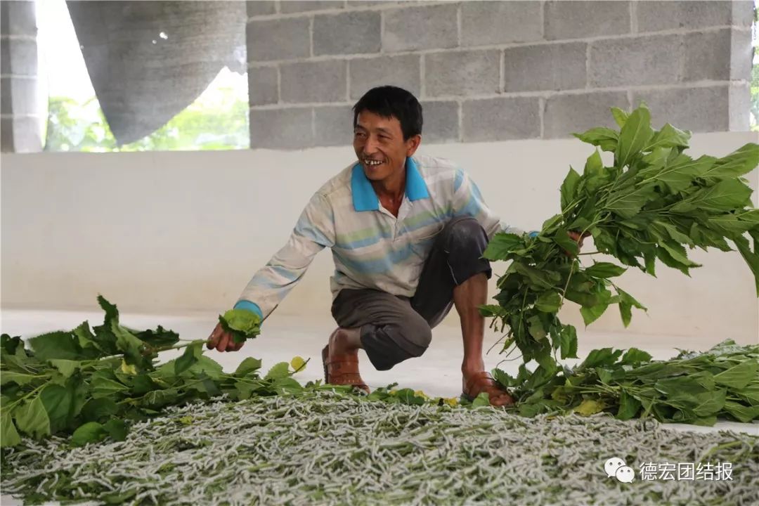 “为确保桑蚕产业的顺利发展,公司充分吸取东部和桑蚕主产区的经验和做法,结合陇川县及周边地区的实际,采取‘公司+专业化小蚕共育基地+农户’的产业化发展模式,把小蚕共育基地建到乡镇、村,进驻技术指导员对农户种桑养蚕生产各个环节进行全程技术跟踪服务。”德宏正信实业股份有限公司董事长郑山洪介绍说,他们公司承担桑蚕产业链中难度最大、风险最高的环节,将难度最小、风险最低的环节交由农户负责,推行1—3龄小蚕由基地饲养,4—5龄小蚕配送到农户饲养。在养殖过程中大力推广多批次、压差式饲养模式,养殖户15—20天可交茧收款,每年可养蚕15—20批次。“这种模式,在农业生产上实现了工厂化连续运作,既保证了公司对优质原料的需求,又最大限度地保障了农户的利益,让农户可以跟着公司实现轻松养蚕,脱贫致富奔小康。”
