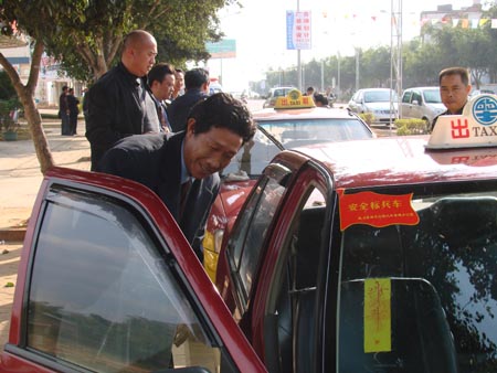 图为“安全标兵车”荣誉称号授予仪式刚结束,乘客选乘受表彰的车辆