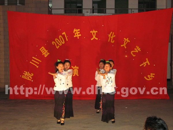 近日,由陇川县委宣传部牵头,县文体局、州景颇歌舞团共同组织筹办的陇川县2007年文艺下乡演出在护国乡帮掌村首次举行。这是陇川县认真贯彻省委、省政府解“五难”惠民工程要求,解决农村群众“看戏难”的具体行动。