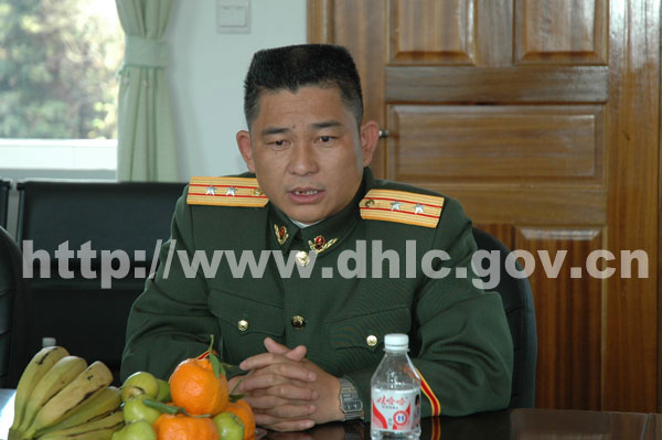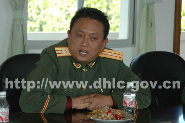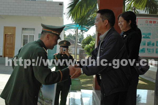 随后,孔勒干、翟元章、谭木坤一行来到边防大队亲切慰问了边防官兵,并与官兵们一一握手,一一查看了部队的营房建设,官兵的学习生活环境。座谈时,孔勒干向部队官兵表示了诚挚地问候和衷心谢意。他在讲话中指出,当前,陇川县政治稳定、经济发展、边防巩固,人民安居乐业,各项事业蓬勃发展,这些成绩的取得,与部队官兵的努力分不开。陇川县作为禁毒防艾的前沿阵地,边防官兵长期以来充分发挥先锋模范作用,保卫边疆、建设边疆、开发边疆,在支援地方经济建设、保一方平安等方面作出很大贡献。特别是拉线边防检查站承担着缅甸迈扎央经济开发区出入境人员的检查工作,广大边防官兵充分发扬艰苦奋斗、不怕牺牲、迎难而上的精神,在出入境管理、维护边境稳定、打击非法偷越国界、禁毒防艾等方面付出了艰辛努力,作出了突出的贡献,使之成为了国境线上一道亮丽的风景线。孔勒干希望驻军官兵把陇川这片热土当作第二故乡,继续发扬成绩,在确保圆满完成戍边任务的前提下,继续支持地方经济和社会发展,地方也将尽可能地帮助部队官兵解决执勤训练和生活学习上遇到的困难和问题。部队官兵表示将继续发扬拥政爱民的优良传统,加强部队建设,苦练本领,为地方的稳定、团结、发展作出积极贡献。在与边防官兵座谈时,部队领导作了热情洋溢的讲话。整个慰问过程充满了军地、军民团结一家亲的浓厚气氛。慰问团还向官兵们赠送了慰问品和慰问金。
