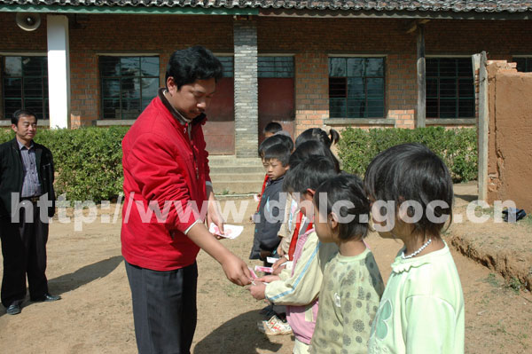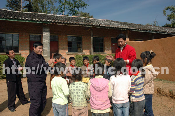 座谈会结束后,孔县长一行来到陆坤小学,亲切看望了乡村教师和贫困学生,查看了新教学楼建设情况。孔县长嘱咐随行的乡、村、学校领导,要切实加强新教学楼和周边环境的建设,把好质量关,确保在新学期来临时全面竣工。慰问当天恰巧是县政府办公室闫永碧同志的生日,在得知陆坤小学部分学生因家庭贫困,即将面临失学的情况后,为了让孩子们能够正常上学,这天,他也带着心愿来到陆坤小学,向贫困学生捐献了爱心,向他们放发了助学资金2000元。当得知是闫叔叔的生日后,孩子们围着闫永碧同志,为他唱起了生日快乐歌。歌声久久在校园里徘徊,爱心乐章在这里唱响……