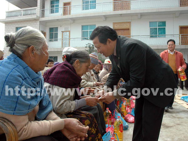 春节将至,为解决困难群众生活难题,让他们安心快乐过个好年,2月7日,由县领导雷天四、们发忠及民政、财政、统计等部门负责人组成的慰问组一行深入城子、章凤、陇把等乡镇,看望、慰问了城镇低保户、下岗职工和孤寡老人,向他们致以节日的问候,并为他们送上慰问金和慰问品。