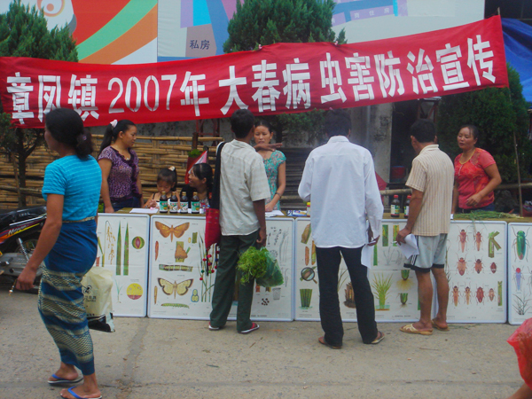 进入7月份以来,持续降雨,是大春农作物病虫害的发生高发期。为确保2007年大春生产高产丰收,近日,章凤镇采用分散、集中的方式分别在7个村委会组织召开大春生产中耕管理和病虫害防治培训会。培训会针对当前影响大春生产的主要问题,从排涝、追肥、病虫害综合防治、除草、间苗等方面向群众进行了讲解。此外,该镇农村经济服务中心还借街天利用图片、实物标本、农药样品、发放宣传单等方式向赶集群众宣讲病虫害防治知识。培训期间,县甘蔗督导组长杨恩跃、县糖办、景罕糖及镇领导均到会指导,并就如何提高甘蔗单产,增加经济效益、增加收入提出了希望和建议。