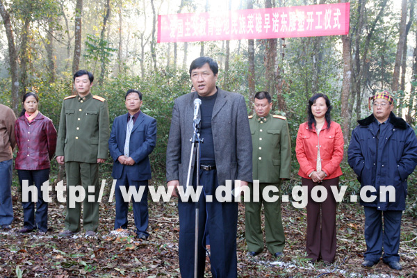 开工仪式,县长孔勒干在讲话中指出,修建民族英雄早乐东雕塑,是为了纪念这位民族英雄的丰功伟绩,弘扬他的爱国精神和民族气节,同时也是县委县政府进一步打造中国目瑙纵歌之乡,加快景颇园建设步伐的一项重要基础工程。要通过修建民族英雄早乐东雕塑,号召全县各族人民群众学习先辈热爱祖国、弘扬正气、维护祖国统一大业的精神,激励全县各族人民增强民族自信心和自豪感,并把这种爱国主义精神和民族气节贯穿在各项实际工作中。他要求各相关部门要服从于工程建设需要,全力配合,积极支持,力争尽快把民族英雄早乐东雕塑建设成为具备旅游、休闲等多功能的公园式爱国主义教育基地,成为我县城镇建设的一个新亮点。同时要求施工单位安全施工,高标准、高质量、按时完成工程建设任务。