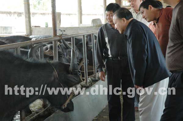 刘成果一行先后参观了陇川县长乐水牛养殖开发有限公司水牛奶加工生产线、城子镇姐乌奶水牛养殖协会奶水牛养殖基地,并详细询问了水牛养殖、水牛挤奶、鲜奶交售、牧草种植、经济收入等情况。