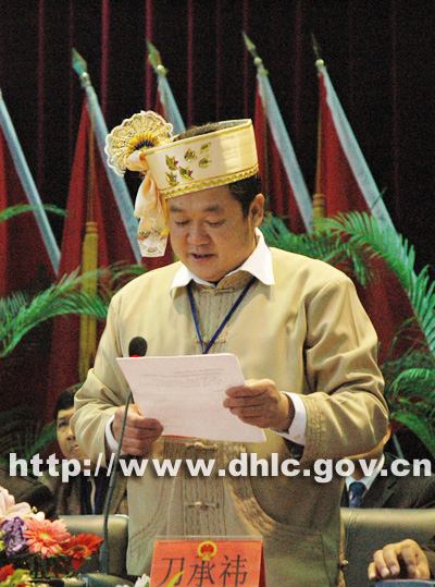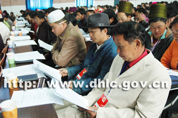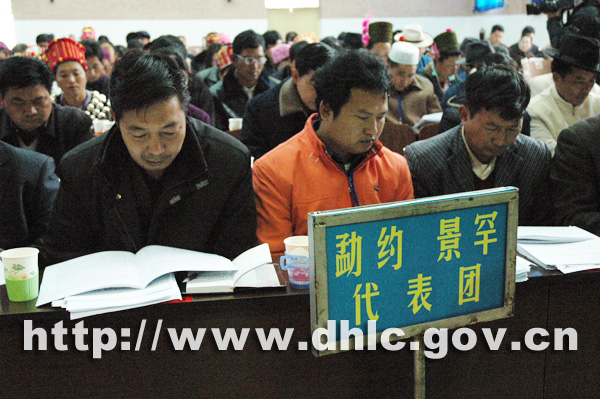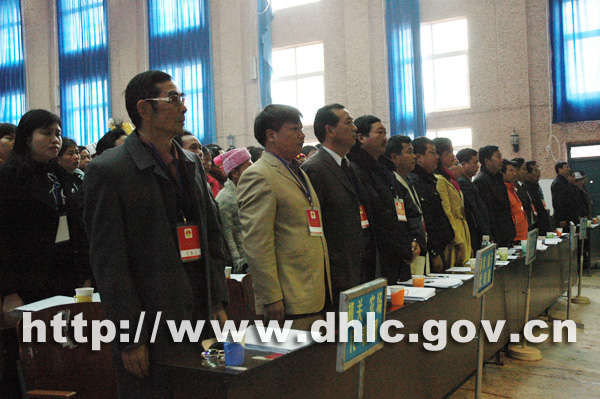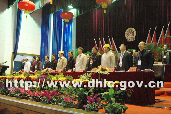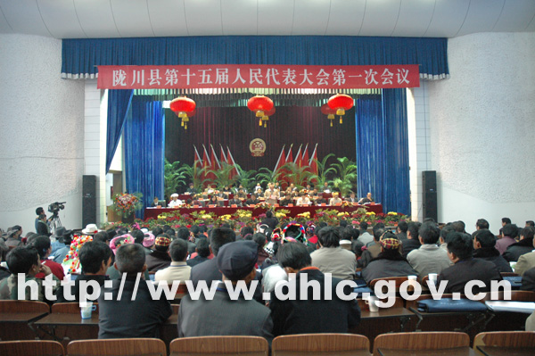 今天的陇川阳光明媚。代表们意气风发的精神状态,使会场内洋溢着浓浓的春意。似锦繁花簇拥着主席台,高悬的中华人民共和国国徽,在十面红旗映衬下熠熠生辉;主席台前鲜花盛开,生机勃勃,会场内处处洋溢着团结鼓劲、催人奋进的气氛。来自全县各行各业和各条战线158名县人大代表,带着全县17万人民的期望和重托,满怀豪情地相聚在这里,履行宪法、法律赋予的神圣职责。上午10时正,会议中心奏响了雄壮的国歌,陇川县第十五届人民代表大会第一次会议隆重开幕。
