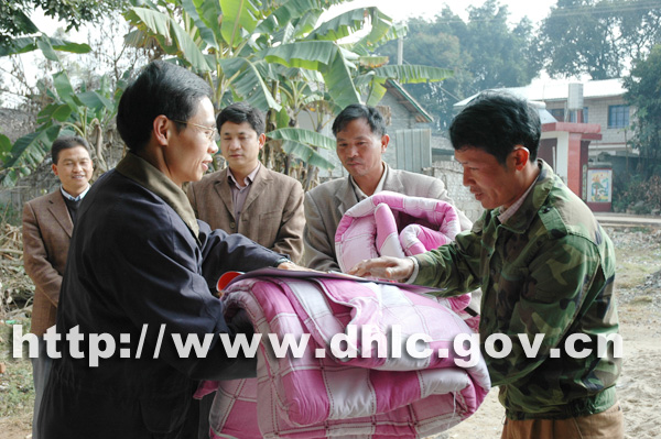 慰问团由州人大常委会主任麻端,州委常委、副州长陈振冲,州人大常委会副主任李志明率领。陇川县党政领导杨世庄、刀承祎、李正环、杨杏等陪同慰问团开展慰问。慰问期间,慰问团分成2个小组开展慰问活动。他们分别到章凤、城子、陇把等乡镇及中国人民解放军77332部队74分队、章凤边境检查站等慰问农民群众、农村基层老干部、农村老党员、老复退军人和边防官兵,给他们送去慰问金和崭新的御寒棉被、挂历等物品,送上冬天的温暖。