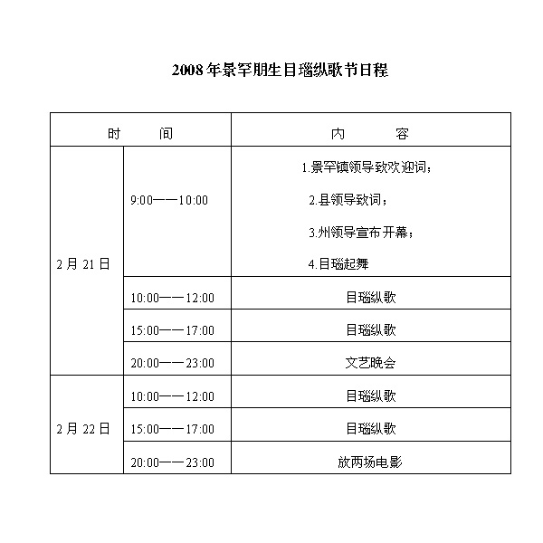 附:2008年景罕朋生目瑙纵歌节日程