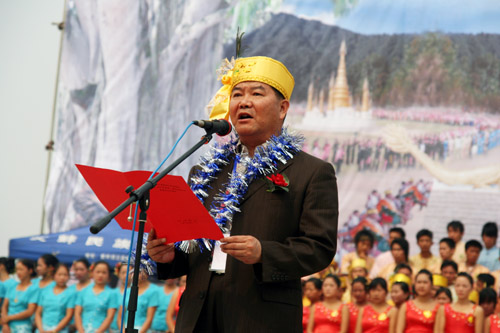 州人大常委会副主任、州委祝贺团团长汪宝泉对陇川县2008年泼水节的隆重举行表示祝贺