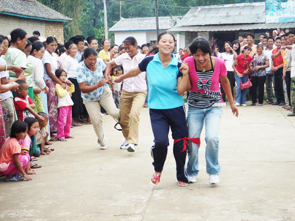 在芒拉村晒场上,聚满了前来参加活动的群众,开展的体育活动项目有拔河、挑沙、双人绑腿比赛等。挑沙比赛让人感受到体能的较量,双人绑腿赛考验参赛双方步调配合的默契,老少皆易的“瞎子敲硭”活动、阵容强大的拔河比赛,都让群众感受到喜庆的氛围,各比赛现场精彩纷呈。计生知识有奖问答现场,副县长张福鸾、县妇联主席许玲聪正忙着为群众发放奖品。
