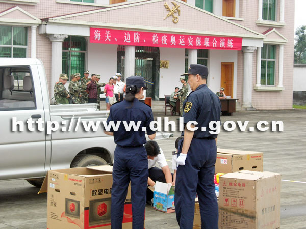 为确保奥运会胜利召开,坚决防范和打击不法分子利用口岸这一渠道潜入潜出和进行破坏活动,云南省陇川县章凤边境检查站经过充分准备,联合章凤海关、检验检疫局、商务局等联检部门开展了奥运安保处突联合演练。