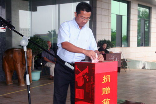 仪式上,县委书记杨世庄,县委副书记、县长李正环率先垂范,接着,县四班子领导及县直各机关干部、工作人员纷纷涌上台,把一张张体温犹存、满载爱心和祝福的人民币投入捐赠箱。