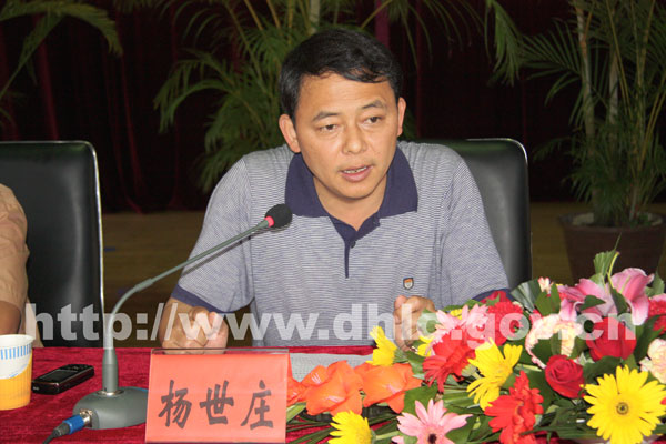 杨世庄在讲话中对2007/2008甘蔗生产取得的成绩给予了高度肯定。他在讲话中指出,我县的蔗糖产业经过历界县委、县政府的不断努力,甘蔗产业已成为我县一个不可动摇的支柱产业。蔗糖产业对拉动全县经济社会的发展具有不可替代的作用,涉及全县80%以上的农村人口11.44万人,在全县农民脱贫致富奔小康中起到了积极的作用,为农业发展、农民增收和农村稳定作出了重大贡献。2007/2008榨季甘蔗产量创历史新高,收获面积达到了30.97万亩,农业总产量达169.82万亩,县内制糖企业入榨甘蔗166.99万吨,生产白糖170143吨,生产酒精9357吨,农业总产值3.48亿元,预计实现产值4.87亿元,预计实现税收0.74亿元,人均甘蔗收入3041元。他还指出,蔗糖产业作为陇川的支柱产业,在拉动全县经济社会的发展,促进农民增收和农村稳定作出了重大贡献,是全县丢不起,也丢不的得的一个产业。因此,各级各部门要高度重视蔗糖产业的发展,要把提高甘蔗单产、亩产值,稳面积、保总量作为工作的重点,在甘蔗的种植、中耕管理、品种改良、病虫害防治等方面下功夫,进一步提高蔗糖产业的质量和水平,促进产业持续健康稳步发展。他要求:一是各级各部门要进一步统一思想,提高认识,按照县委、县政府确定的甘蔗提质增效的发展思路,切实加强对甘蔗工作的组织领导;二是加强宣传,充分发动,营造发展生产的良好氛围;三是统筹布局,合理规划,共同发展;四加强科技的推广应用,加快蔗糖产业提质增效;五是明确任务,抓好落实。