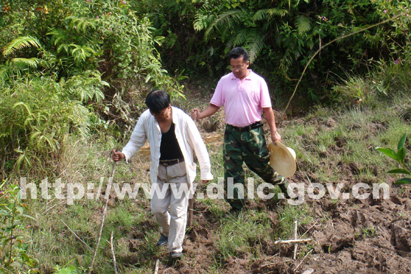 在双坡山,李正环一行穿行在山林中,沿着崎岖的山路,查看矿脉的走向,听取了专家对整个矿带的分析和介绍。