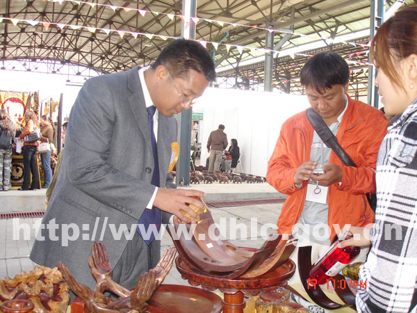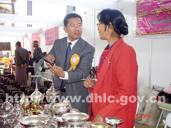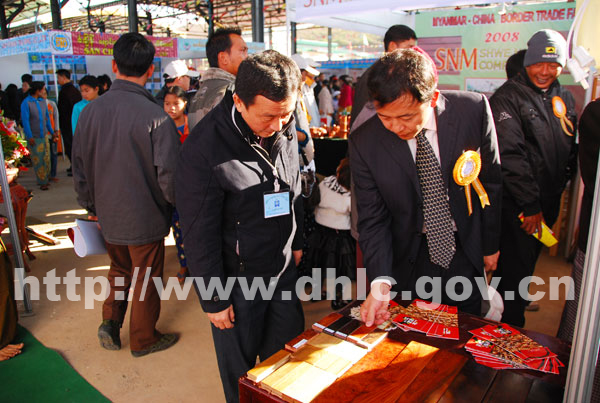 陇川县委书记杨世庄和县长李正环在出席完“2008年第八届缅甸?中国边境经济贸易交易会”开幕式后,来到展馆参观了我县的参展企业“甸川工贸(集团)股份有限公司”,详细了解了此次公司的参展情况,对此次参展的所有工作人员予以亲切的慰问,还对“甸川工贸(集团)股份有限公司”近年来对地方经济发展所做的贡献给予了充分的肯定。