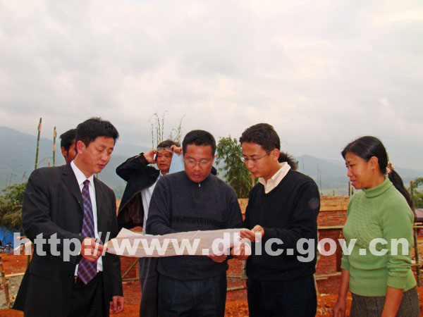 清平乡广岭村和毛家寨是陇川县灾后重建统建点,目前各项恢复重建工作正在紧张有序地进行,广岭村原址现已焕然一新,一幢幢崭新的民房即将建起,灾民春节前将搬进新居过新年。李正环一边检查一边听取了相关部门的汇报,详细询问了各项工作的进展情况和重建整体建设规划布局情况。李正环指出,恢复重建工作是当前压倒一切的工作,要真正把恢复重建工作视为一项政治任务来完成,特事特办,在确保施工质量的大前提下,要认真按照省、州、县恢复重建工作要求,高速度、高效率地抓好恢复重建各项工作。县委、县政府将视工程进程情况,根据监理提出的意见,分批把建设资金足额拨付到位,施工单位不能因建设资金原因耽误工程建设进程。要确保大部分受灾群众春节前搬进新居,要让灾区群众的春联贴在新居上、鞭炮鸣在新居前、砧板响在新居里,在春节前把民房恢复重建各项工作掀起一次新高潮。