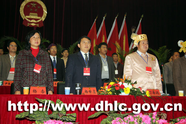 上午9时正,会议中心奏响了雄壮的国歌,陇川县第十五届人民代表大会第二次会议隆重开幕。