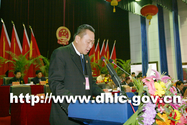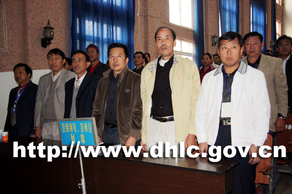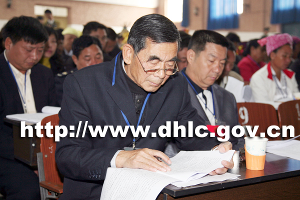 中共陇川县委书记杨世庄,县人大常委会主任刀承祎,县政协主席杨杏,县委副书记多守辉和大会主席团执行主席在前排就座。大会执行主席是刀承祎。