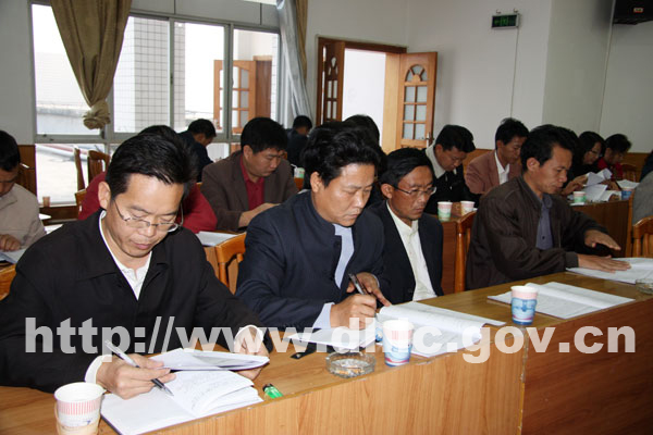 县委书记杨世庄出席了会议并作了动员讲话。他在讲话中指出,开展履职承诺是进一步完善干部管理体制、机制的需要,是进一步推动陇川经济社会发展的需要,有利于推进干部考核评价机制,树立正确的用人导向,营造聚精会神抓经济,踏实苦干求发展的浓厚氛围。做好履职承诺考核工作既是对活动开展情况的综合考评,也是进一步推进活动深入开展的需要。杨世庄还指出,此次考核涉及面广,任务艰苦,责任重大,为做好此次考核任务,杨世庄要求:各考核组要高度重视、加强学习,认真领会履职承诺考核工作的精神内涵,全面掌握履职承诺考核指标、考核程序,严格考核原则和纪律,根据考核暂行办法,认真对全县9个乡镇、60个部门承诺单位进行考核。同时,新闻媒体要做好考核期间的相关报道,使考核工作做到公开、公正、公平。