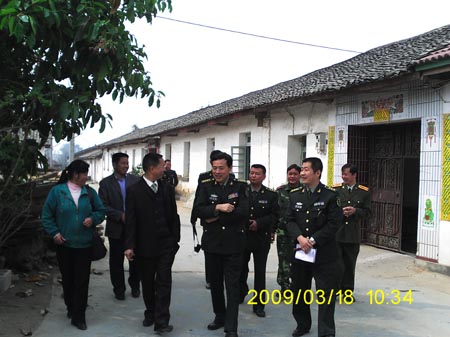根据州委、州政府的安排部署,德宏军分区禁防挂钩联系点于2009年调整为陇川县城子镇城子村。调研中,马福朝深入德宏军分区禁防挂钩点城子村、县人武部禁防挂钩点城子社区走访,了解了城子镇、城子村、城子社区的经济社会发展、禁毒防艾、新农村建设、民兵预备役、民兵参与禁毒防艾等工作情况,并与当地干部群众座谈,共同探讨如何做好新一轮禁毒防艾和新农村建设工作。当马福朝了解到城子社区第十片区党员文化活动室由于建设经费缺口较大导致停工时,当即表示由德宏军分区资助4万元。他说党员文化活动室是党员思想政治教育阵地,对维护社会稳定,促进民族团结、经济发展有着积极的作用。他要求基层党组织要管好、用好党员文化活动室,充分发挥其党员思想文化教育阵地的作用,并依托文化活动室对基层八大组织的成员开展禁毒防艾、新农村建设、公共卫生、科学养殖等各种实用技术的培训。