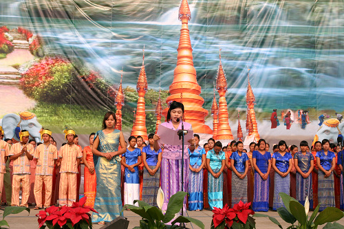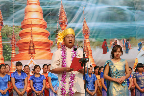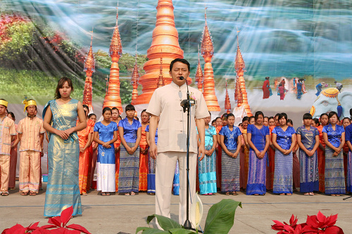 12日上午9时30分,泼水狂欢活动开幕式在民族文化广场隆重举行。随着县委书记杨世庄一声“陇川县2008年泼水节,开幕!”整个广场顿时水花四起,身着节日盛装的各族干部群众,远道而来的各位来宾,各县(市)祝贺团,不由自主地加入到长龙般的嘎秧队伍中,以片片水花传达出彼此最真挚的祝福。广场上,四起的水花,悠扬的鼓声,此起彼伏的欢笑声,变化多姿的翩翩嘎秧舞,编织出一副有声有色的动感图案,编织着陇川的美好明天。
