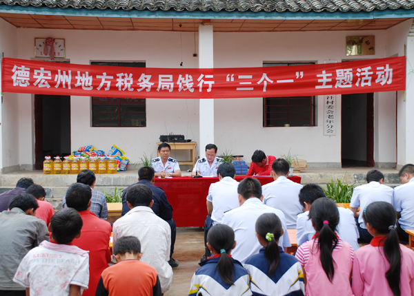 根据德宏州委学习实践科学发展观活动的统一部署,州地税局结合地税实际,认真组织开展“一面旗,一团火,一盘棋”,“推进一项特色工作,联系一个基层党支部,帮助一户贫困党员家庭”的主题实践活动,实行“一对一”、“一帮一”结对帮扶,为群众脱贫致富想办法、出点子。6月26日,由州地税务局党组书记、局长岳志新带队,携州地税局党组成员孔亮和各科室、稽查局主要负责人一行16人,对德宏州地方税务局副科级以上干部结对帮扶对象户撒乡明社村贫困户开展送温暖活动。