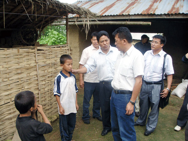 汇报会后,检查组一行深入到广宋村曼洪村民小组民族上层人士排早堵家,看望慰问其遗孀遗属,为他们带去了大米和慰问金。随后,检查组又深入到景罕广姆,研究讨论了景罕广姆的奘房建设的有关事项。