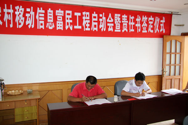 最后,县政府和9个乡镇负责人签订了农村移动信息富民工程责任书。