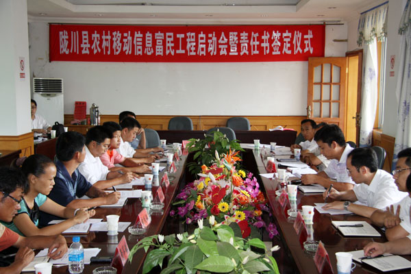 县委常委、副县长李兴庄在讲话中指出农村信息化建设是社会主义新农村建设的重要组成部分。“农村移动信息富民工程”是推进农村信息化进程,促进社会主义新农村建设,提高农村信息化应用水平的惠民工程。各乡镇,相关部门要加强领导,充分认识实施农村移动信息富民工程的重要意义,精心组织,抓好农村移动信息富民工程的具体实施工作。就切实贯彻落实好我县农村移动信息富民工程工作,李副县长要求各乡镇及有关部门一定要按照县政府的统一安排部署,进一步细化、量化工作任务,扎实工作,切实落实好“移动信息富民工程”建设项目,一是各乡镇要加强领导,组织到位,安排专人抓落实;二是作为牵头单位的陇川移动分公司要做好各项宣传培训、服务工作;三是各有关部门要按照部门职责和工作实际积极配合相关工作。