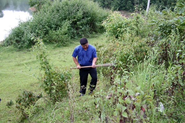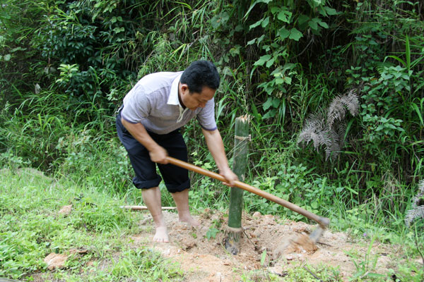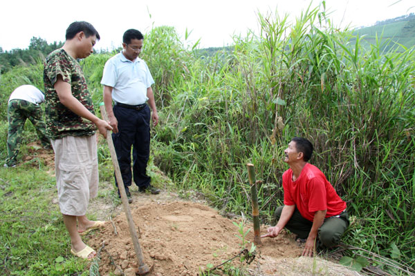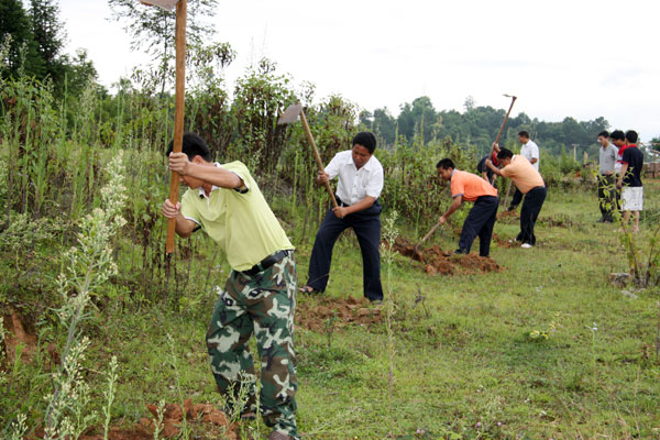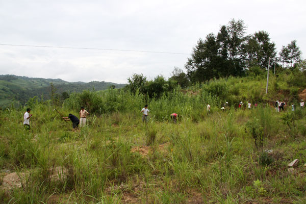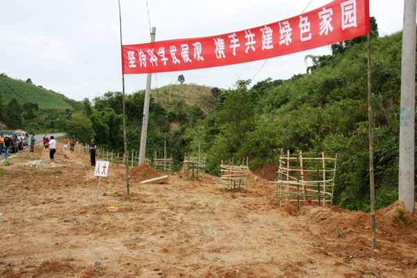 种竹过程中,无论是领导干部,还是一般职工,大家大力发扬不怕苦、不怕累的劳动精神,高挽裤腿,你挖坑、我培土、他浇水,两个一组,三个一群,同心同德,按照种植规格和种植方法,共同把一棵棵竹苗种到景罕至勐约弯曲盘旋的公路两旁。在火热的种竹现场,已分不清谁是领导,谁是一般干部职工。