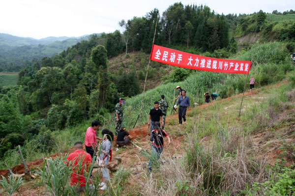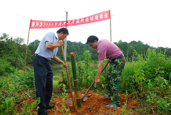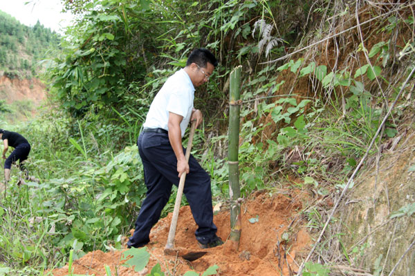 经过全县干部职工一上午的艰苦劳动,此次共种植竹子2000余株。