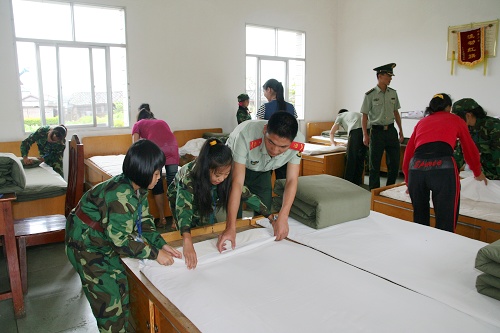 随着夏令营活动教官的一声哨响,全体小营员纷纷跳下床,在教官