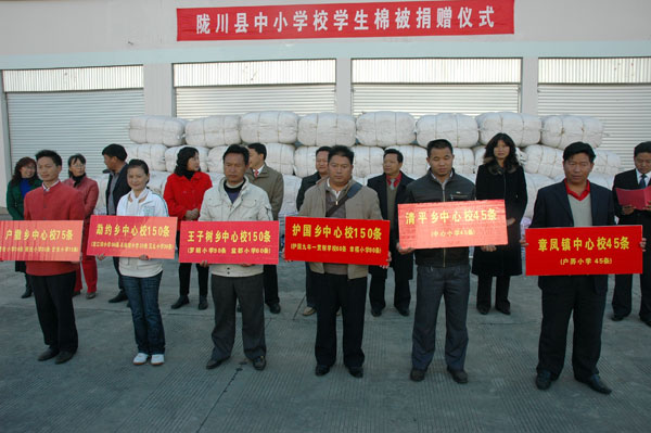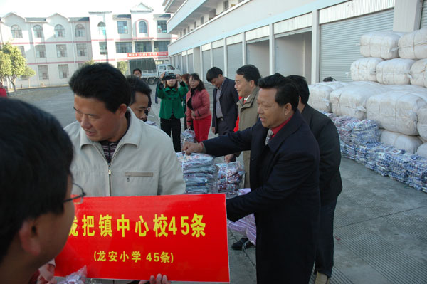 随后,杨世庄、杨杏、张益伟、们发忠、杨德恒、何庆国、廖晓腊、刘杰江等领导亲手将棉被发放给全县各中小学。