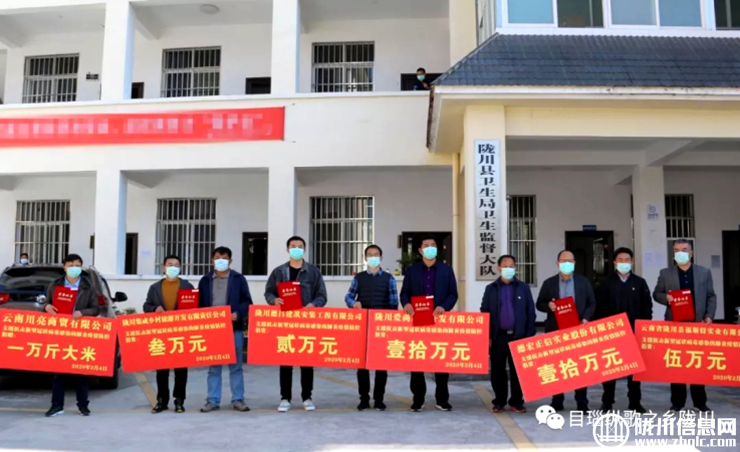 积极响应党委政府号召,在重要时刻体现政治自觉和责任担当。牢记初心使命,万众一心,众志成城,非公经济界爱心人士和宗教界爱心人士纷纷伸出援助之手,坚决打赢这场没有硝烟的硬仗大仗。截至目前,共有德宏正信实业股份有限公司,陇川爱尚旅游开发有限公司,云南省陇川县福斯特实业有限公司,陇川集成乡村旅游开发有限责任公司,德宏州陇川县福建商会,陇川德昌建筑安装工程有限公司,陇川扬程食品有限责任公司,云南川亮商贸有限公司和陇川县陇把镇户岛青松寺,共计捐款333666元,捐物大米一万斤、隔天向7个检查卡点赠送食品等,捐赠款物将全部用于疫情防控一线。