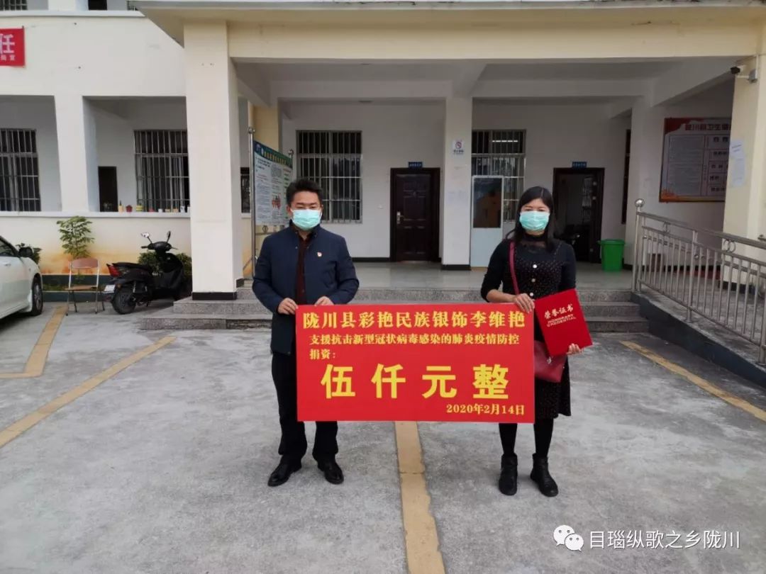 李维艳,陇川县户撒乡一名普通的农村妇女,在家经营着一个银饰铺面(彩艳民族银饰)。2月14日,她来到妇联,表达了自己想为陇川抗击疫情工作贡献一份爱心的强烈想法,“现在发生疫情,国家遇到困难,我想尽一点自己的心意”。县妇联积极与县疫情防控指挥部联系,协调捐赠事宜。当日,李维艳为支持抗击疫情防控捐赠现金5000元。
