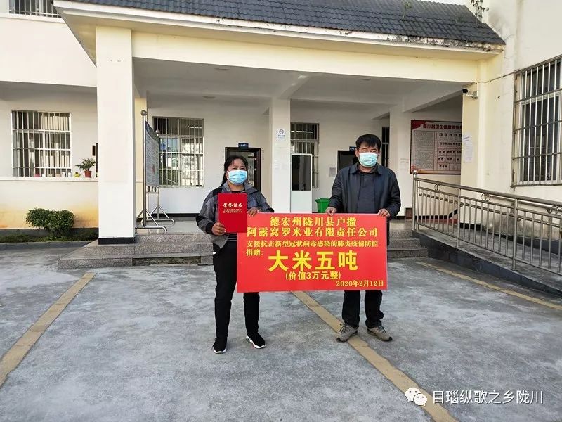 张润湘,陇川县户撒乡人,陇川县户撒阿露窝罗米业有限责任公司负责人,为支持抗击疫情防控捐赠大米5吨,价值30000元。