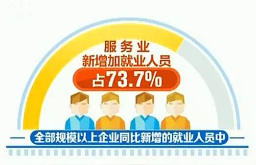 经济的活力增强不仅仅带动了大学生的就业增量。1-7月份,全国城镇新增就业855万人,比上年同期增加了20万人,已经完成了全年目标的77.7%。在全部规模以上企业同比新增的就业人员中,服务业新增加的就业人员占73.7%,而新成长、不断壮大的小微企业为就业提供了80%的岗位。