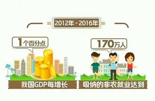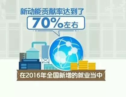 据国家统计局测算,2012年-2016年,我国GDP每增长1个百分点,吸纳的非农就业达到170万人,数量要比2009-2011年增加30万人,在去年全国新增的就业当中,新动能贡献率达到了70%左右。