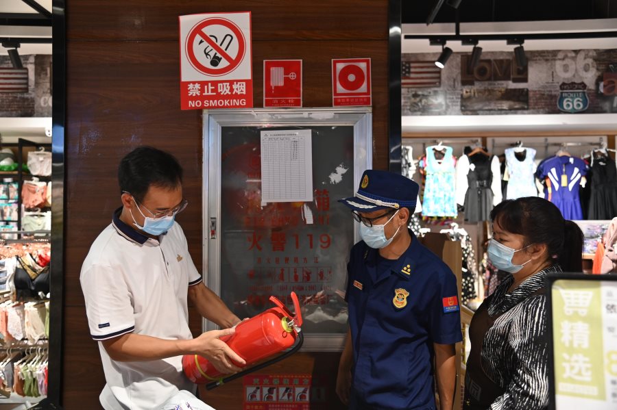 检查组来到财富中心东方家园超市,实地检查消防安全管理制度是否健全,消控室值班人员是否在岗在位、消防设施设备是否正常运行、安全出口和疏散通道是否畅通、疏散指示标志及应急照明设置是否符合要求、消防设施器材是否保持完好有效等情况,实地听取了陇川县消防救援部门在COP15会议期间在安全生产、疫情防控和消防安全等方面的工作情况。