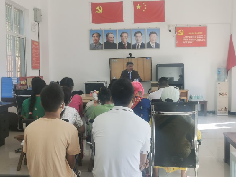 全体党员面向党旗举起右拳,重温入党誓词,以饱满的热情表达为党的事业奋斗终身的决心和信心。宣传部、学教办的干部与群众围坐在一起,向大家传达中国共产党德宏州第八次代表大会精神。随后,全体党员一起开展“我为群众办实事”实践活动,为广林村各小组困难党员、贫困家庭、困难学生等送去学习和生活用品。