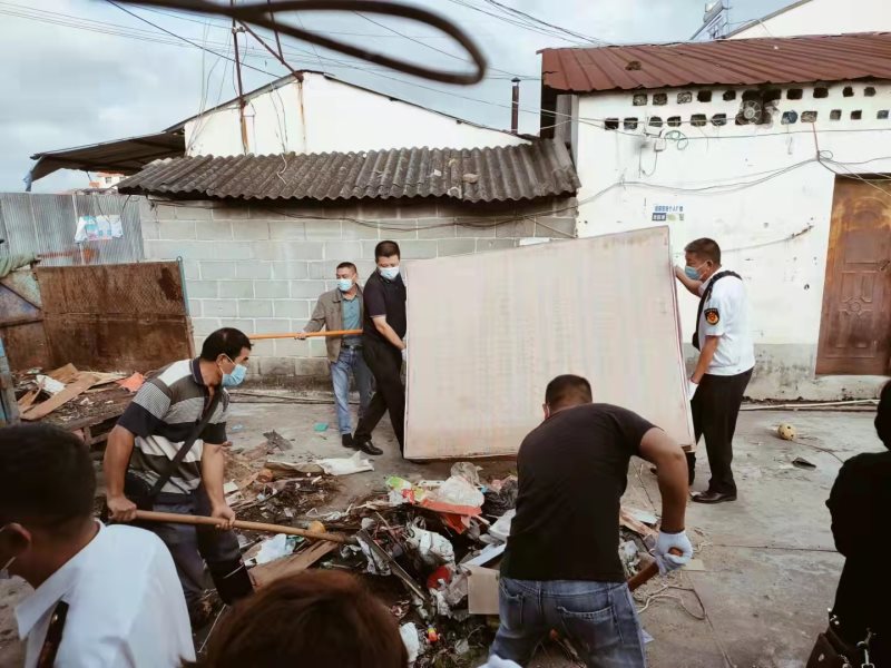 当前,陇川县创建国家卫生县城已进入攻坚阶段。为全面做好迎检冲刺各项工作,全面压实网格包保责任,10月27日和28日,县委常委、副县长李卫亲自到县人社局负责的17号和市场监管局负责的2号网格化管理片区,指导并带领全体干部职工集中开展爱国卫生工作。在此期间,李副县长与干部职工一道,按照创卫有关标准和要求,针对私搭乱建、乱堆乱放、乱贴乱画、乱排乱倒、杂草垃圾等各类影响市容环境的问题,尤其是卫生死角和以往没能下决心治理的难点堵点问题,认真进行了一次“改头换面”式的大卫生扫除,全面改进提升网格区内的环境卫生状况。