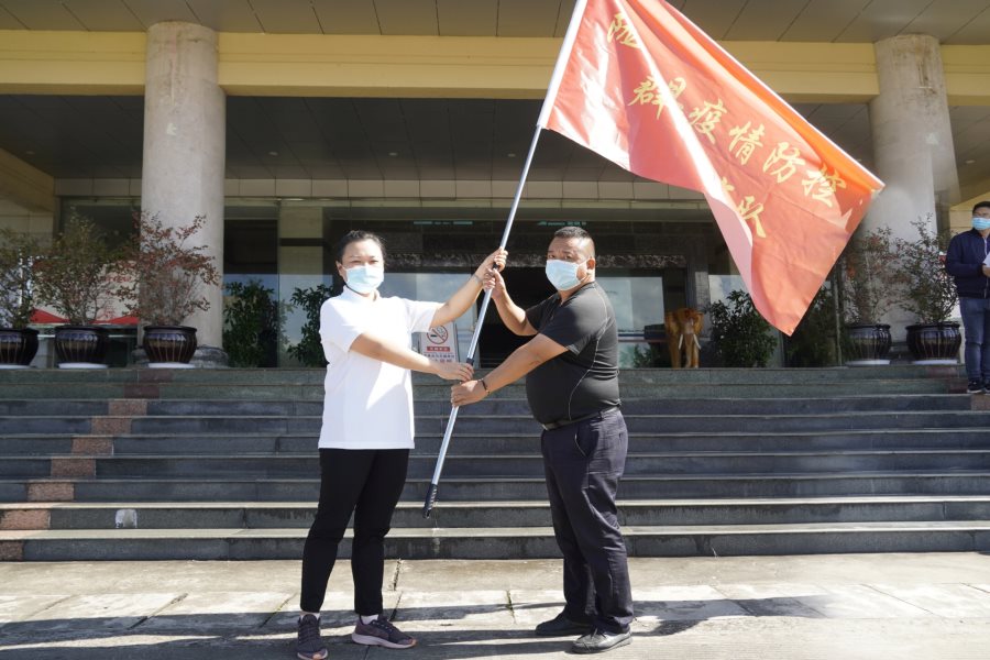 2021年11月5日下午,陇川县疫情防控群众工作队由县人民政府出发,前往抵边村寨支援。县政协党组书记龚茂丹做出发前动员讲话。